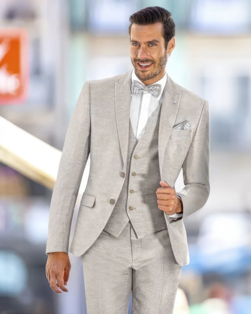 O Fato de Noivo Clássico Tradicional é uma celebração do estilo clássico que transcende o tempo. Cada detalhe do seu design tradicional e refinado foi escolhido cuidadosamente para transmitir confiança e distinção. O ajuste perfeito proporciona conforto durante todo o dia, permitindo ao noivo desfrutar plenamente da ocasião especial. Este fato é versátil e adequado para diversos eventos formais, desde casamentos a celebrações elegantes. Com o Fato de Noivo Clássico Tradicional, você incorpora a elegância atemporal em cada passo.